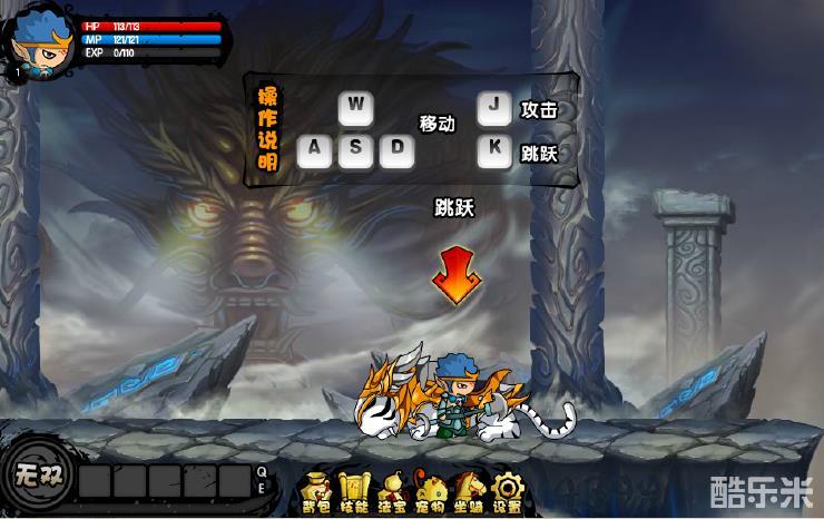 我们一进去之后,我们会看到简单的操作说明,还有我们霸气侧漏的白虎坐骑,我们骑上去看看,作为神兽的白虎有什么厉害的地方。