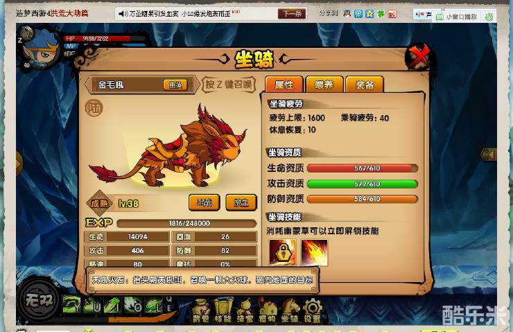 造梦西游4沙僧闯南部瞻洲—— 坐骑金毛吼