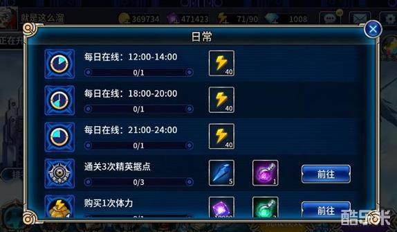 每天12-14点、18-20点、21-24点这三个时间段上线,可以领到40点额外体力。