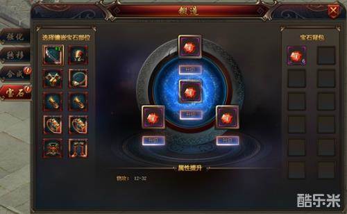 武器、衣服、手镯、戒指、腰带、头盔、项链、鞋子这几个部位,每个部位都可以镶嵌宝石,一个部位最多镶嵌4颗,每三颗相同的宝石还可以升级到更高一级的宝石,镶嵌宝石可以获得额外更多的属性。