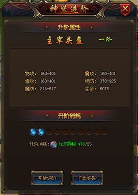玩家拥有对应数量的九天陨铁即可对神装进行升阶。升阶后的神装不仅提升属性,更会有强力被动技能提升以及超强套装属性!