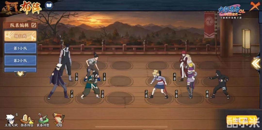 这套阵容的核心在于保证白和再不斩的输出,因此选择把鹿丸【少年篇】和雷主放在前两手,保证控制。后续无论是哪一位忍者触发普攻追打,都能打出7~8段追打伤害,很有机会在第一回合就打残甚至击杀对方一人。