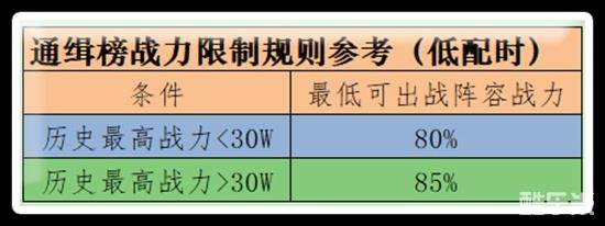 通缉榜规则中对于战力限制规则的简单介绍