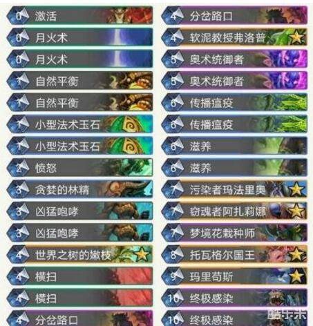 任务法最近的表现也不错,目前来看完全有着T2上游的水准,过牌和任务是两个核心,控血需要依靠法术来进行,远古雕文的上限很大,也非常灵活,打不同的对局可以根据局势选择合适的法术,香蕉小丑现在算是完全成了做任务的核心,费用低廉不卡手,前期还能对场面有所帮助。