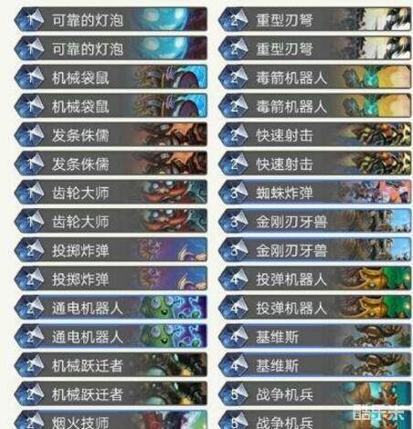 不成功便成仁,说的就应该是这套卡组,作为一套快攻,前期的节奏是很重要的,如果1费2费都空过等于可以投降,所以低费的生物非常多,小机械之间的相互作用可以快速建立场面优势,金刚刃牙兽完成爆发,一般抢一轮血对面就受不了了,剩下就射箭上怪听天意。