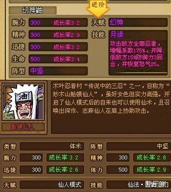 木叶世界蛤蟆仙人与幻神鼬的基础属性技能及阵型搭配: