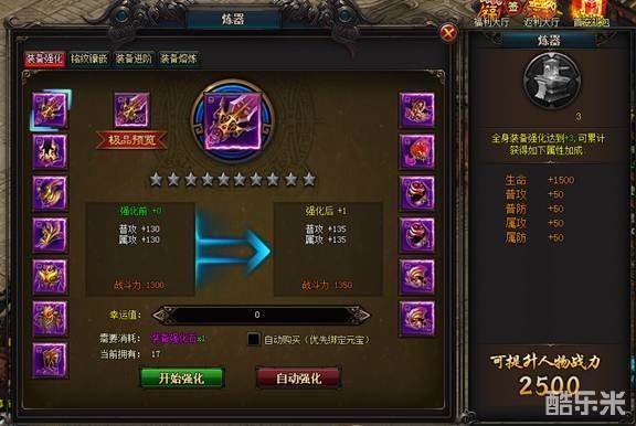 1. 点击主界面中的炼器图标或者快捷键,打炼器界面,就可看到强化界面。