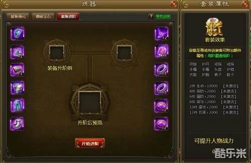 人物达到X级开放装备进阶系统,装备进阶后增加装备属性。