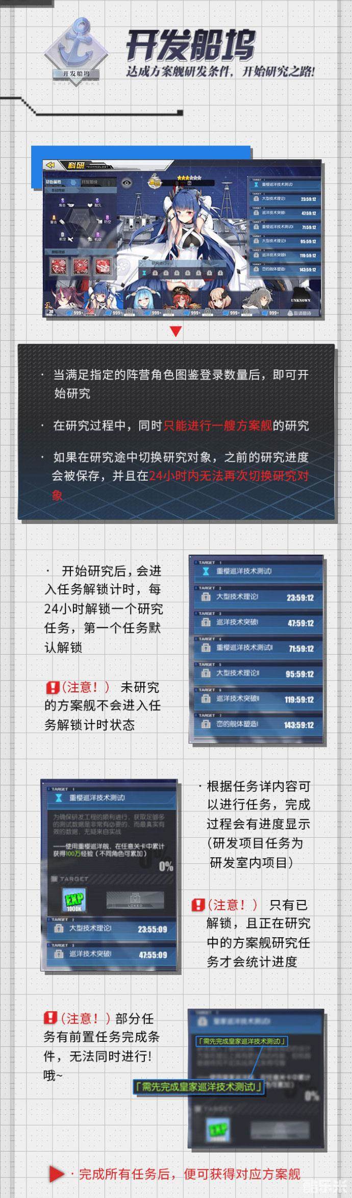 (注意!) 只有已解锁,且正在研究中的方案舰研究任务才会统计进度