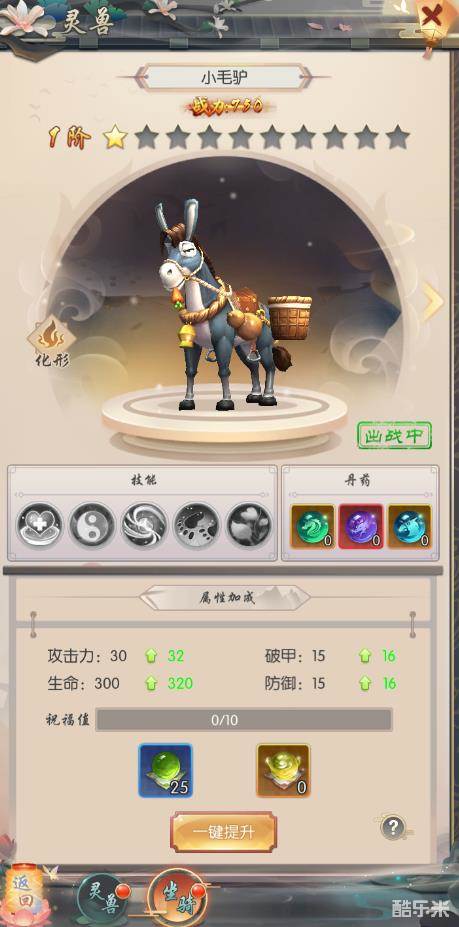 5、坐骑也可用过使用不同等级的丹药获得更多的属性加成;