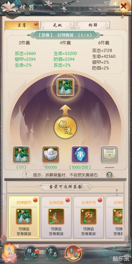 4、拆解或替换套装时,将自动全额返还消耗的套装石。