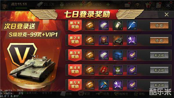 ——开服前7天登录即可领取,不但能领取大量金砖,还有S资质坦克哦!