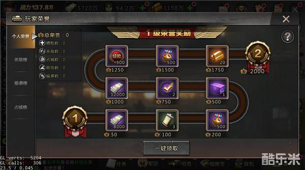 ——完成全部日常任务及积攒个人荣誉,均可获得一定数量的金砖奖励!