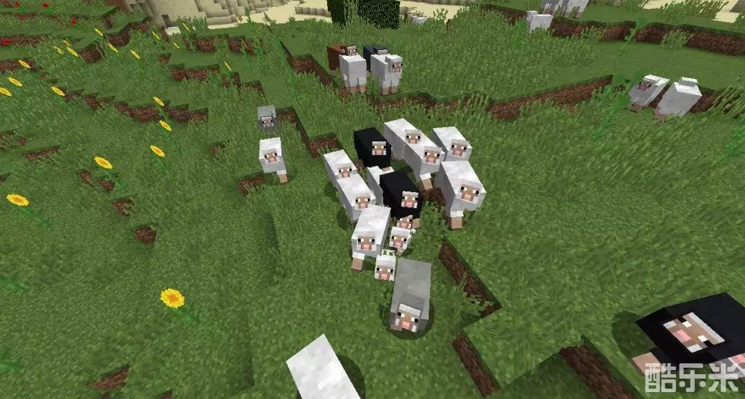 羊会在亮度>9等级、上方空间≥2格的草地上自然生成,在针叶林、沼泽等地形成羊群。