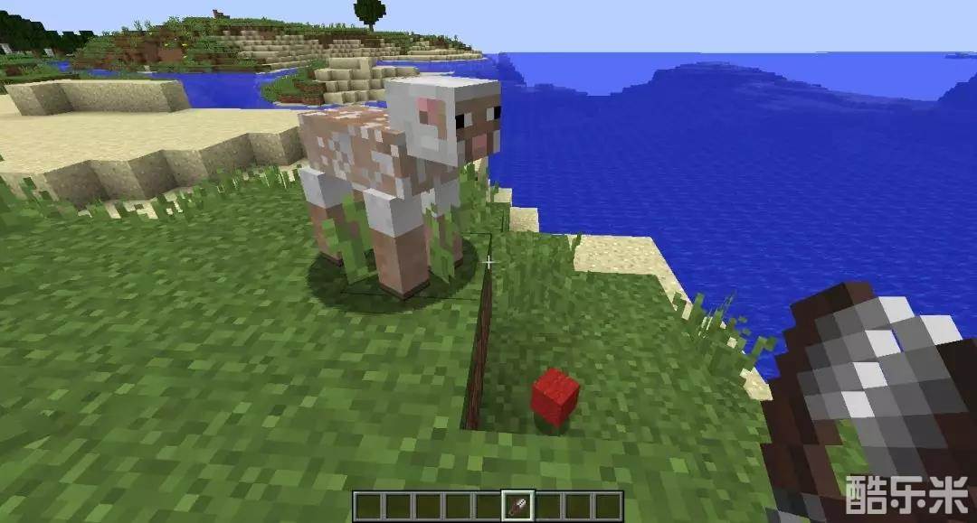 3.羊被染料右键染色后,用剪刀右键可以获取相应颜色的1~3块羊毛(杀死则只能获得1块羊毛),剪完羊毛之后,羊会变成白色无毛状态,但是吃草就可以重新长毛(重新长的毛是染色后的颜色)