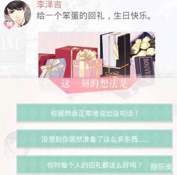恋与制作人给一个笨蛋的回礼李泽言朋友圈是小编为大家带来的,恋与制作人给一个笨蛋的回礼,生日快乐,关于李泽言对女主角说出的生日祝福,玩家该怎么回复呢,下面不妨详细了解下吧。
