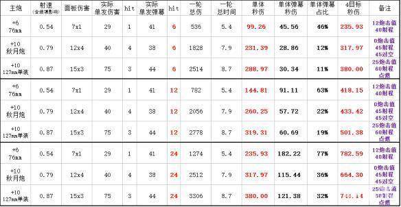 当单目标hit数只有6时即使是4目标,76mm的输出也远不及秋月炮和127