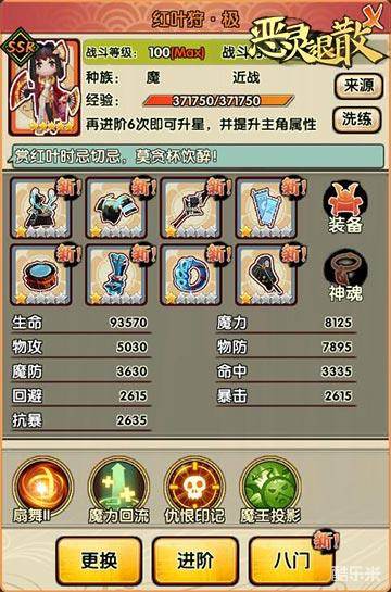 作为魔族的近战先锋,红叶狩·极不仅在近战攻击中占有绝对优势,还能够自给自足,在受到伤害时有几率恢复自身生命。主动技能“扇舞”能够对范围内3名敌人各造成100%伤害,并使随机3名友方命中增加15%。