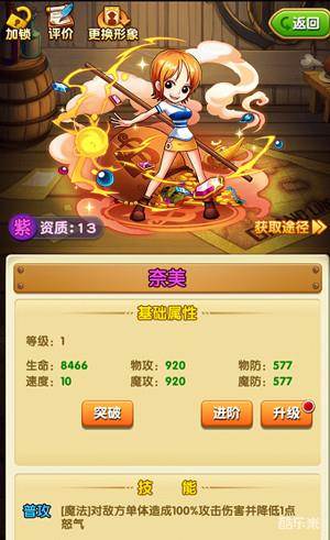 在《航海王强者之路》中也同样如此。但虽然娜美是一个辅助角色,她却有一颗不甘于只是辅助的心。在游戏中,娜美有着非常强大的综合能力,能肉能辅助也能输出,此次红卡升金,娜美的实力再次飙升。作为小编最心爱的角色,娜美人气与实力兼备,排在第一自然当之无愧。