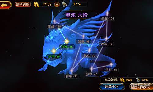 首先,培养你的圣兽。在无法顺利通关主线任务的时候,系统往往会弹出让你提升技能、装备、名将的提示,然而这三者能提升的战力其实相当有限,都不是能提升游戏角色战力的最快路径。培养圣兽虽然会消耗大量的金币和声望,但是其对属性的加成效果也是立竿见影的,投入更多的精力在上面比较划算。建议金币和声望充足的玩家选择培养十次。