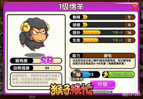 攻击后会在自己身上展开1回合的静电场,经过静电场的我方攻击将追加2-4点伤害。通过能力介绍,绵羊属于半攻击半辅助动物,既可以猎杀对手动物,也可以在下回合增加己方动物的攻击伤害,配合猎杀型动物小象和加伤害型动物山羊,可以一波将对手动物打残,可以说是个非常实用的动物。
