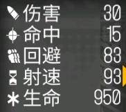 伤害30,命中15,射速93;穿甲10,暴击5%,爆伤150%