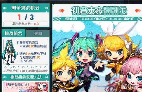 初音未来翻翻乐,每天登陆可获得1次挑战机会,通关3次推荐地下城可额外获得1次机会,每天最多可挑战3次。