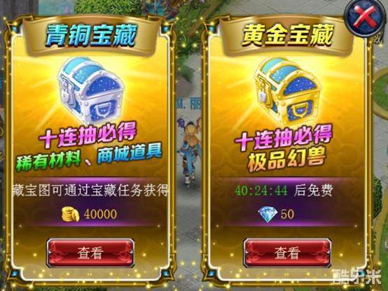 使用藏宝图或铜钱可以寻宝,十连抽不仅价格上有九折优惠,还能百分百得到稀有材料或商城道具哦。