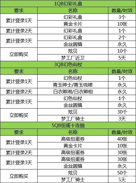 十倍的收益又来啦,带给你十倍的快乐,2019年3月1日—2019年3月31日期间,玩家可花费1QB、3QB或5QB购买我们为大家准备的三款回馈礼包中的其中一款,并在次日中午领取超值回馈!