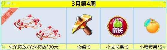 任务奖励:朵朵待放/朵朵待放*30天+金镐*5个+小成长果*5个+小精灵果*5个
