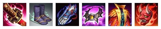 【出装推荐】:名刀·三日月+叶隐具足+缠魂袖爪+八岐大蛇之目+九天穹之翼+鬼相护面