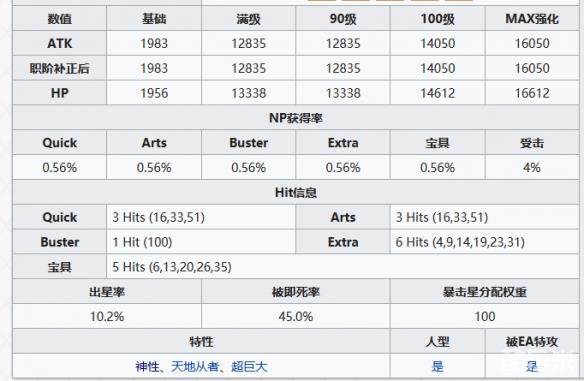 先看职介技能,帝王花拥有EX的阵地作成,加上两张3hits蓝卡的配卡,拥有不俗的np获取能力。A+的狂化带来11%的红卡提升,还有单独行动的暴伤。可以说是非常强力的职介技能了。