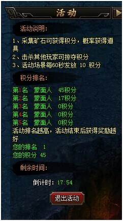 3:在活动场景内可持续获得积分,每1发放1次积分,每次10积分,在地图内的玩家都可可到公告