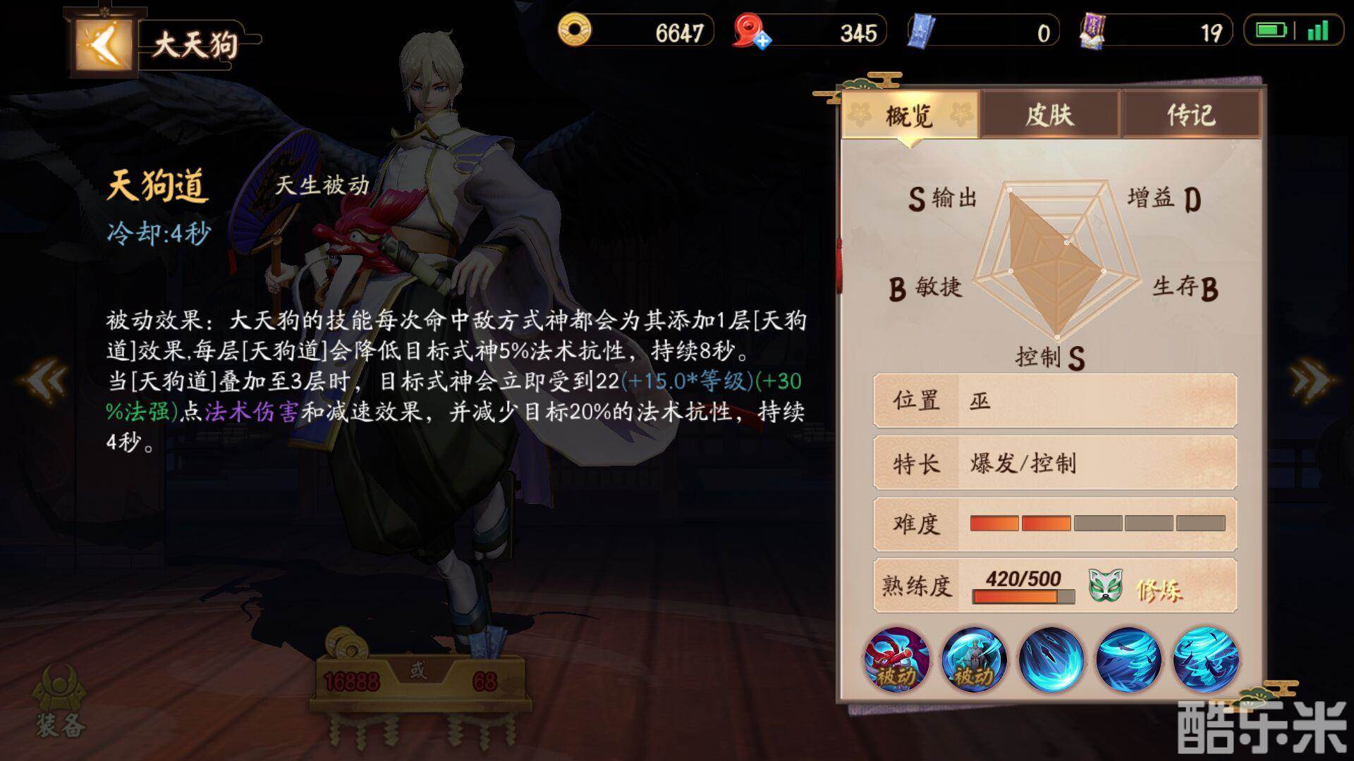被动效果:永久大天狗增加自身法术强度12/24/36/48/60点。