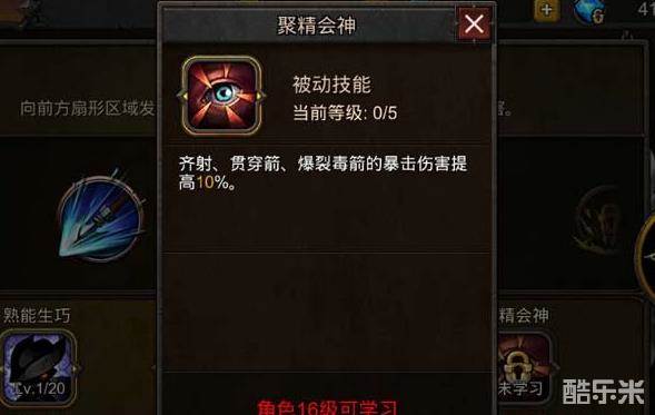技能介绍:齐射、贯穿箭、爆裂毒箭的暴击伤害提高10%