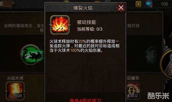 学习条件:法师角色等级达到4级,只有学习了火球术后才可以学习火焰大师技能