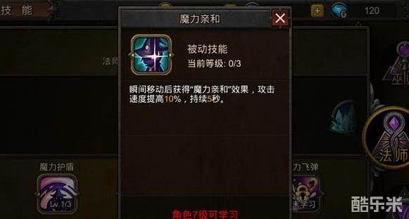 学习条件:法师角色等级达到7级,只有学习了瞬间移动后才可以学习魔力亲和技能