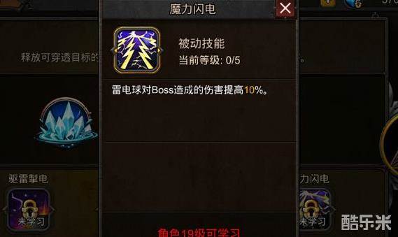 技能介绍:雷电球对Boss造成的伤害提高10%