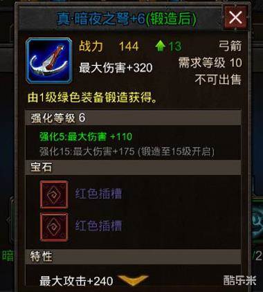 宝石:真·暗夜之弩是蓝色装备,可以镶嵌两个红色宝石。