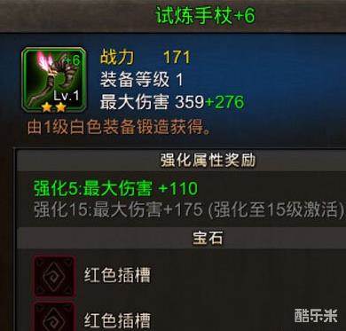 宝石:试炼手杖是绿色装备,可以镶嵌两个红色宝石。