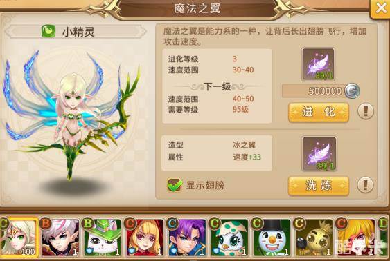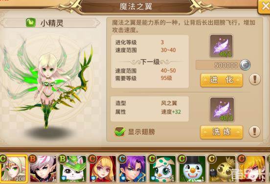 魔法之翼可以通过进化获得更多造型和提升属性增加范围,而游戏中每次进化所需要的材料消耗都是一样的并不会增加,非常良心。