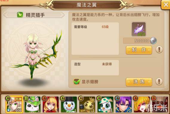 魔法之翼是一种有华丽装饰效果,又能够增加人物战斗速度的个性魔法,游戏中玩家英雄等级达到65级之后,即可为其制作心爱的魔法之翼。