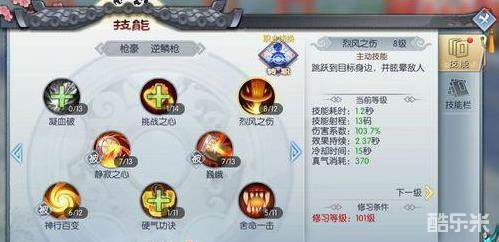烈风作为一个控制技能且是成长性控制,建议随级点满,不要小看那零点几秒的控制,有时就能帮你衔接控上一个奶妈压低对方血线;拉打的一般都是跑圈,这时候就要利用禁风手动跑四角直线抄捷径,只要转到减速你就能接上技能耗血。