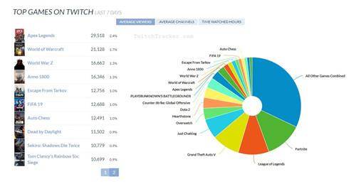 根据Twitch Tracker数据表明,过去七天内本作的平均观众人数只有34269人,连Twitch热门游戏前十名都没有入围,而比它运营时间更长久的《堡垒之夜》仍然牢牢占据着Twitch观看热榜第一名(过去7天内平均观众为15万3840人)。在国内此前直播的该游戏的主播也转战别的游戏。