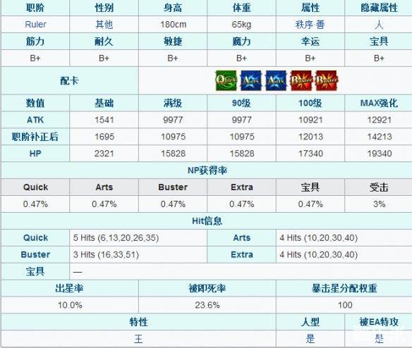 评价:自身无敌+嘲讽,攻击力提升,暴击威力提升,暴击星集中度提升。暴击特化的宝具,可惜的是NP回收率一般,自身白值过低使得没有宝具buff的真空期伤害不足。