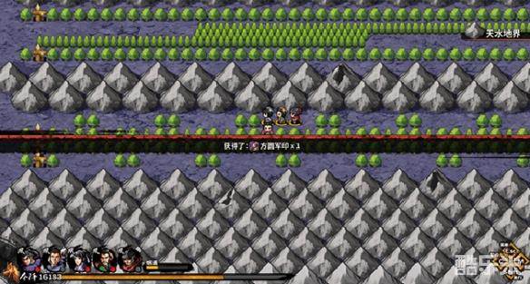 天水城下方有一处连绵的山脉,穿插着一条黄色的树林,需要蛇形进入,走到密林深处时,遭到了蛮族的偷袭。敌军为五个蛮族士兵,血量和防御极高,会使用方圆阵,他们的普通攻击都带有晕眩效果(堪比五个魏延)。此战需要一定的等级和策略。