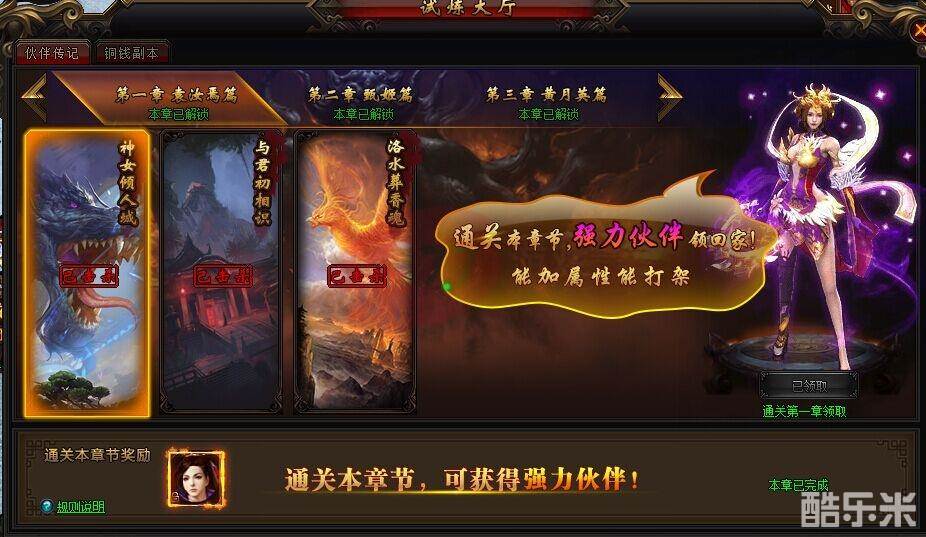 伙伴副本共5章,每通关一章都会获得一个伙伴,越靠后的伙伴越厉害哦!