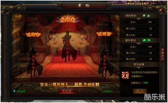 完成军阶任务或其他产出的军功令,使用后获得军功值,军功值达到升级需要的军功值数皆可升级