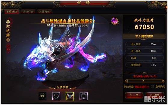 坐骑系统可以为角色提供防御、最大攻击、最小攻击和移动速度的加成。