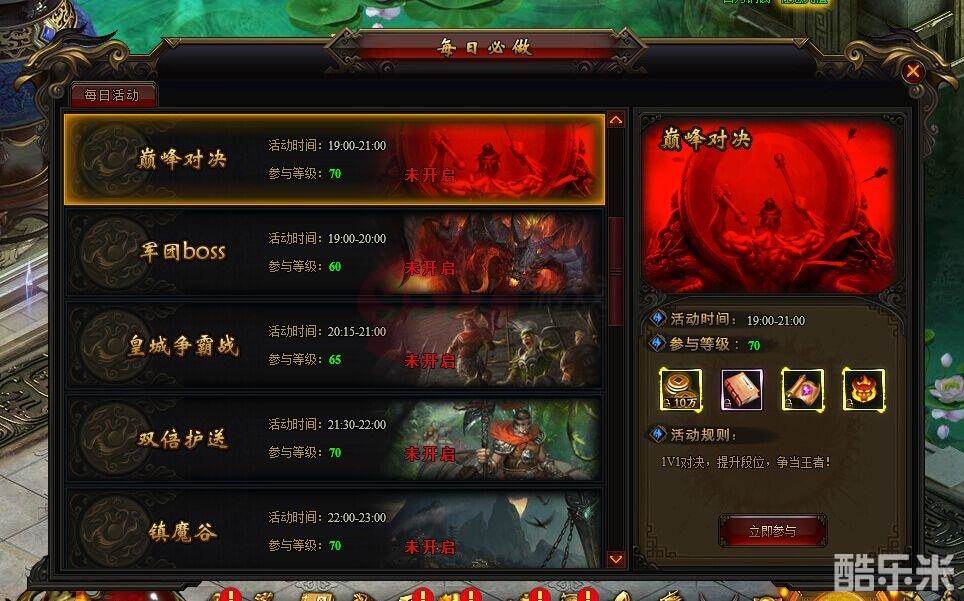 玩家只需等级满足相应的定时活动要求,就可以在活动时间内,去参加自己喜欢的一些定时活动。玩家要了解游戏有哪些定时活动,可以直接从界面上方的“定时活动”图标,进入到活动列表里查询的。